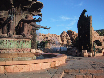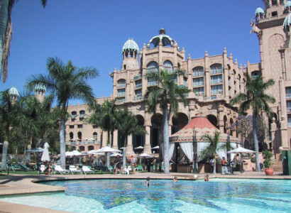Sun City is a South African version of Las Vegas, completed in 1992. The holiday resort is situated a two hours drive from Johannesburg (if you know the way – you definitely cannot navigate by the road signs).