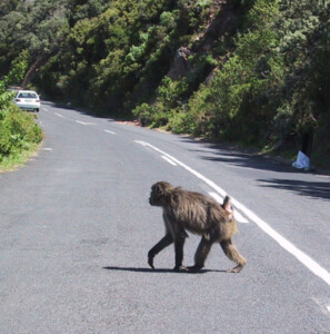 The Cape of Good Hope at the southernmost tip of the Cape Peninsula offers some great views and interesting animal life. Baboons habitate there, and in the ocean there are whales and penguins.