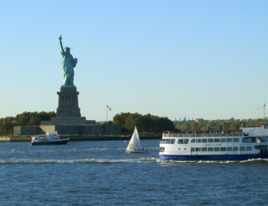 From Battery Park, at the southern tip of Manhattan, there is a free ferry service to one of the boroughs in New York, Staten Island. The ferry offers a great view of Downtown Manhattan, Brooklyn, New Jersey and the Statue of Liberty.