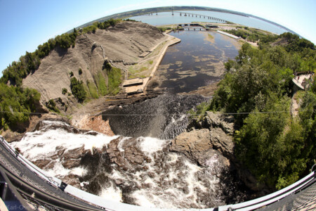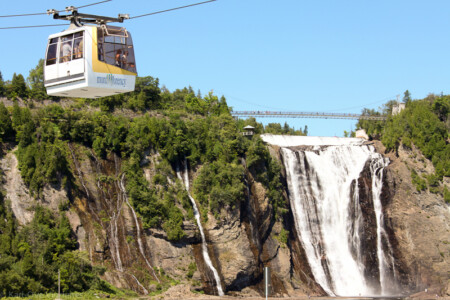 12 kilometers northeast of Quebec City is the 84 meter high Montmorency Falls.
